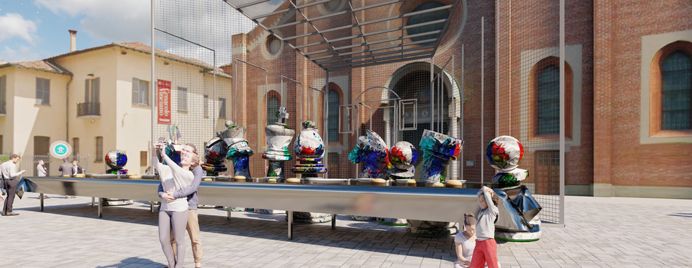 The setting in front of Santa Maria Delle Grazie adds an extra layer of depth to Pjeternikaj's work. The play of light and shadow, the echoes of history in the architecture, and the palpable sense of reverence all contribute to the immersive experience of viewing these sculptures.